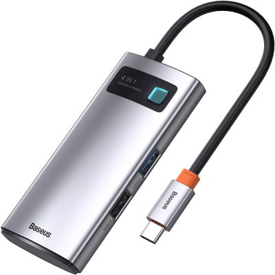 هاب 4 پورت بیسوس Baseus Metal Gleam 4 in 1 Multifunctional Type-C HUB CAHUB-CY0G توان 100 وات